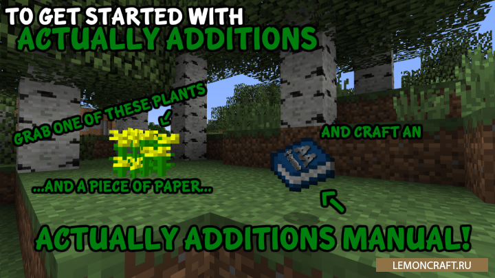 Индустриальный мод Actually Additions добавляет в игру много новых блоков, механизмов, оружия и брони. Кроме этого, после установки мода, вы сможете найти новые виды растений, новые руды, лазеры, автоматизированные фермы и много других полезных штук. Мод имеет встроенную инструкцию по изучению всех особенностей мода. Мод достаточно обширный, так что готовьтесь затратить немного больше времени на его освоение.