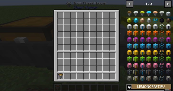 Мод на воронки с сундуками Chest Hoppers позволит автоматизировать некоторые процессы путем добавления в игру воронки с сундуками. В данных воронках будет больше места и стандартный функционал, но просто бросить туда предмет не получится. Для того, что бы положить предмет в воронку, вам нужно будет ее открыть, так же как и сундук. Данный мод совместим с модом Iron Chests.