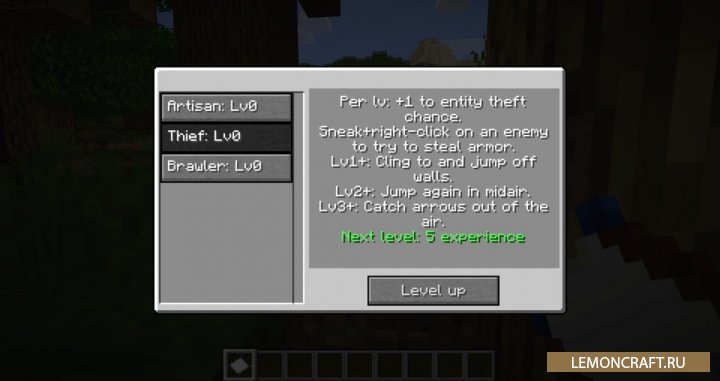 Мод на новые классы игрока SkillCheck добавит в игру три уникальных класса: вор, потасовщик и ремесленник. С помощью специального листа вы можете развивать данные классы, повышая их уровень. В результате каждый класс будет получать новые способности с повышением уровня.